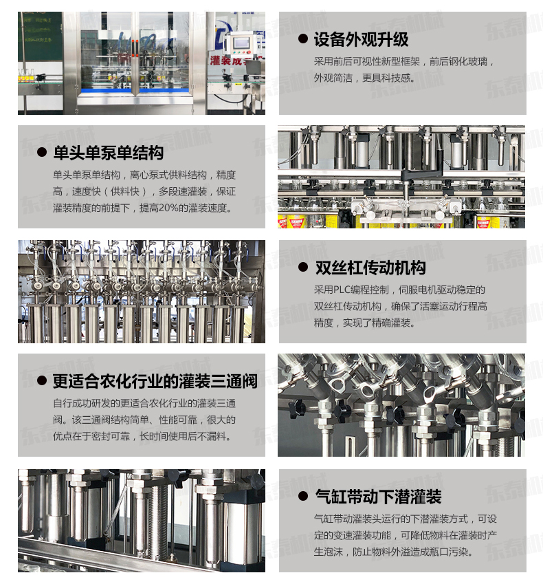 7、灌裝頭是我公司創(chuàng)新的灌嘴,可有效解決拉絲、滴漏問題.