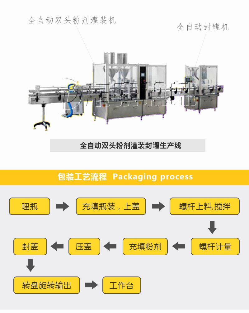 全自動粉劑灌裝機適用于包裝粉末及小顆粒物料,如粉劑、小顆粒劑藥品、獸藥、葡萄糖、調味品、固體飲料、碳粉、爽身粉、農藥等。