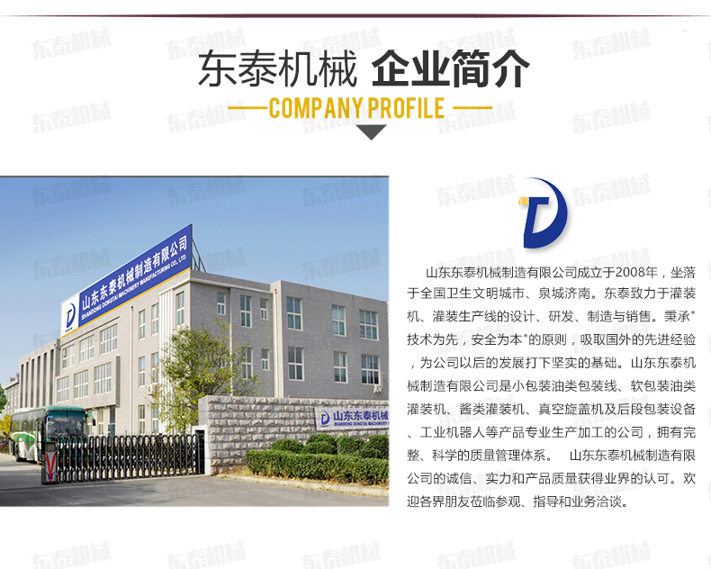 沈陽東泰機(jī)械隸屬于山東東泰機(jī)械,主營粉劑包裝機(jī)、醬類醬料包裝機(jī)、食用油灌裝機(jī)、食品包裝機(jī)、包裝流水線、灌裝生產(chǎn)線等產(chǎn)品,并且為東北地區(qū)客戶提供售后維修服務(wù)...