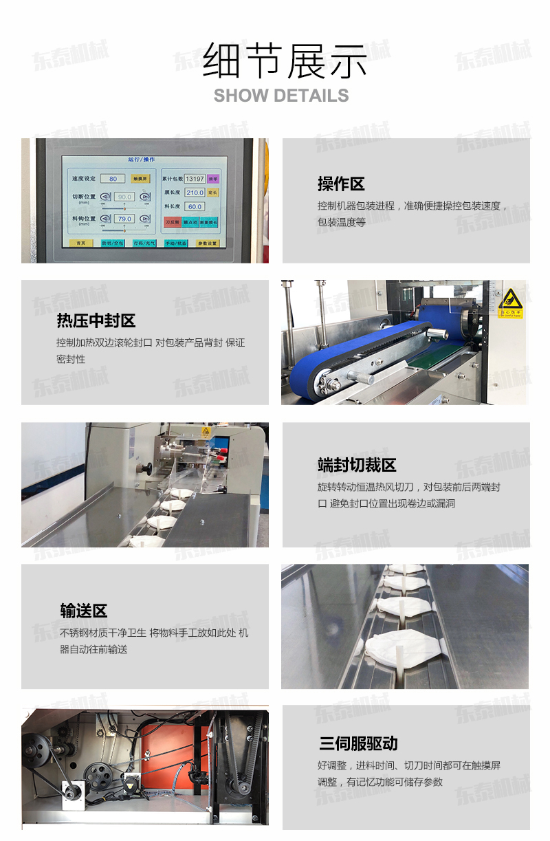 口罩包裝機(jī)產(chǎn)品簡(jiǎn)介: 1.口罩包裝機(jī)速度快省人工山東濟(jì)南供貨枕式包裝機(jī)是目前國(guó)內(nèi)新型的自動(dòng)連續(xù)收縮 包裝設(shè)備,采用石英遠(yuǎn)紅外管加熱,節(jié)電高效(節(jié)電15以上); 2.收縮溫度和電機(jī)傳動(dòng)速