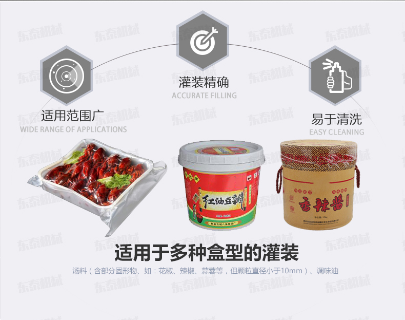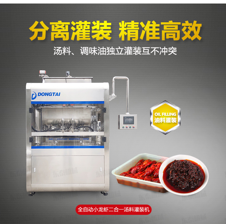 紅油辣椒醬自動灌裝機(jī)介紹: 紅油辣椒醬自動灌裝機(jī)針對于調(diào)味小龍蝦深加工行業(yè)的調(diào)味油、湯料的加注,整個系統(tǒng)為直線式傳送結(jié)構(gòu),湯料、調(diào)味油可在同一臺設(shè)備上實現(xiàn)準(zhǔn)確定量,且湯料、調(diào)味油為獨立的