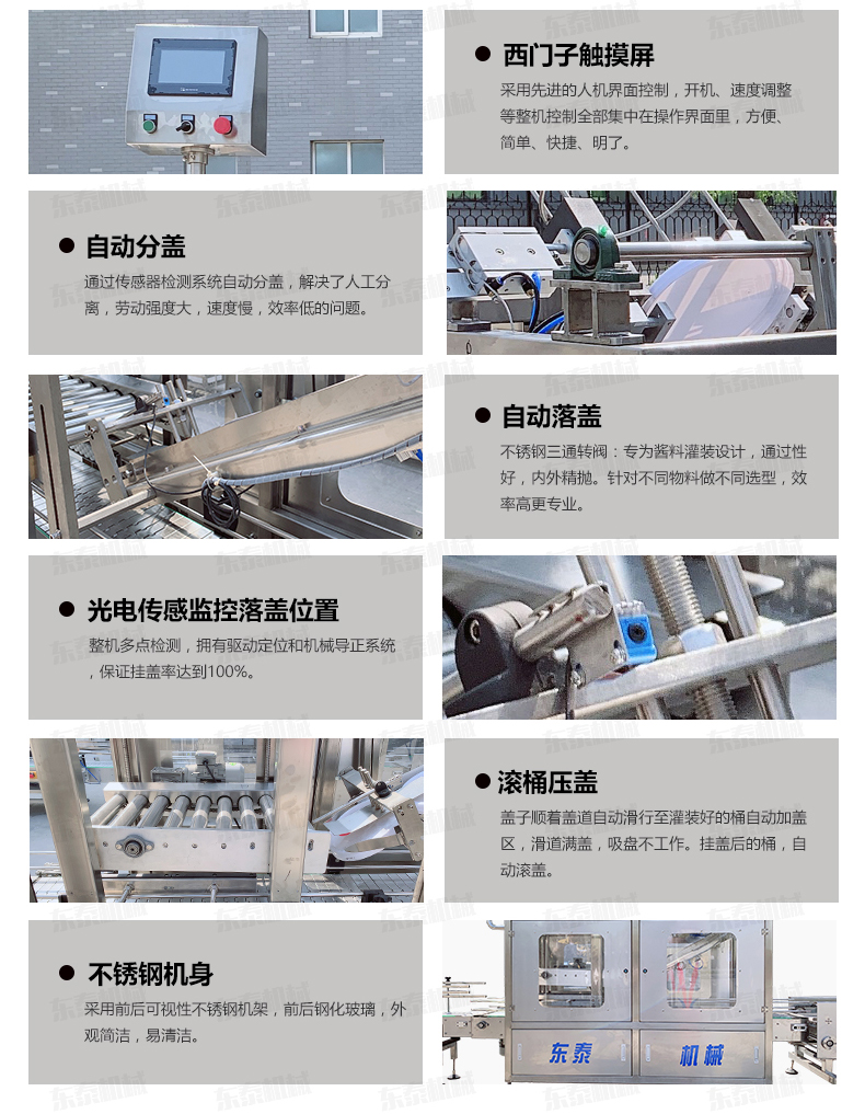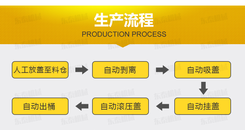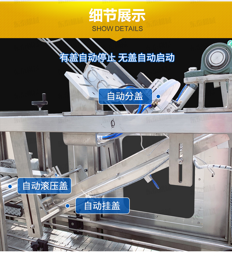 全自動落蓋機操作流程 人工放蓋至料倉——自動剝離——自動吸蓋——自動掛蓋——自動滾壓蓋&mdash