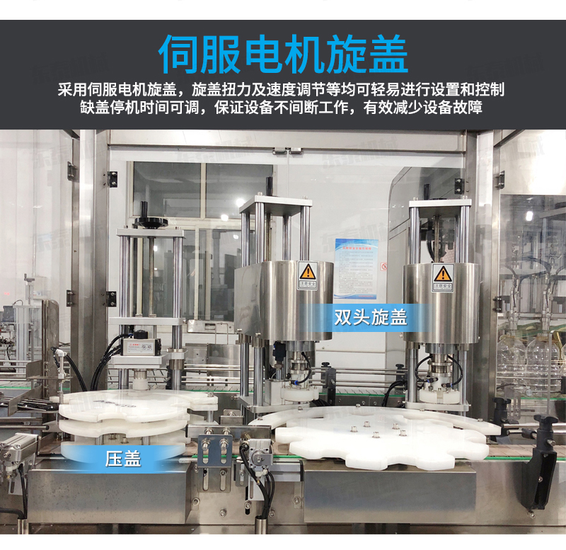 該枇杷膏灌裝機生產(chǎn)線-上蓋機結(jié)合用戶使用的情況,摒棄了傳統(tǒng)轉(zhuǎn)盤式真空旋蓋機的弊端,研制開發(fā)的新型設(shè)備,設(shè)備自動檢測到設(shè)定數(shù)量的瓶子、蓋子進入到真空旋蓋機內(nèi),旋蓋機彩色顯示屏會實時顯現(xiàn)旋蓋狀況,整機多點檢測,當進口無瓶無蓋、出口堵塞、定位不準、瓶身傾倒均自動停機。單個旋蓋頭達到的真空度都可以單獨顯示,單獨調(diào)整。合格率達到100%!