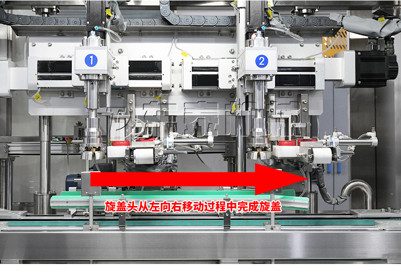 FXG-2E型全自動(dòng)雙頭跟隨式旋蓋機(jī)由理蓋輸蓋機(jī)構(gòu)、抓蓋旋蓋機(jī)構(gòu)、運(yùn)動(dòng)模塊、 輸送機(jī)構(gòu)及控制系統(tǒng)組成。整機(jī)結(jié)構(gòu)簡(jiǎn)單、調(diào)整方便。該設(shè)備為我司研制,產(chǎn)品在移動(dòng)過程中,完成旋蓋動(dòng)作。區(qū)別于常規(guī)