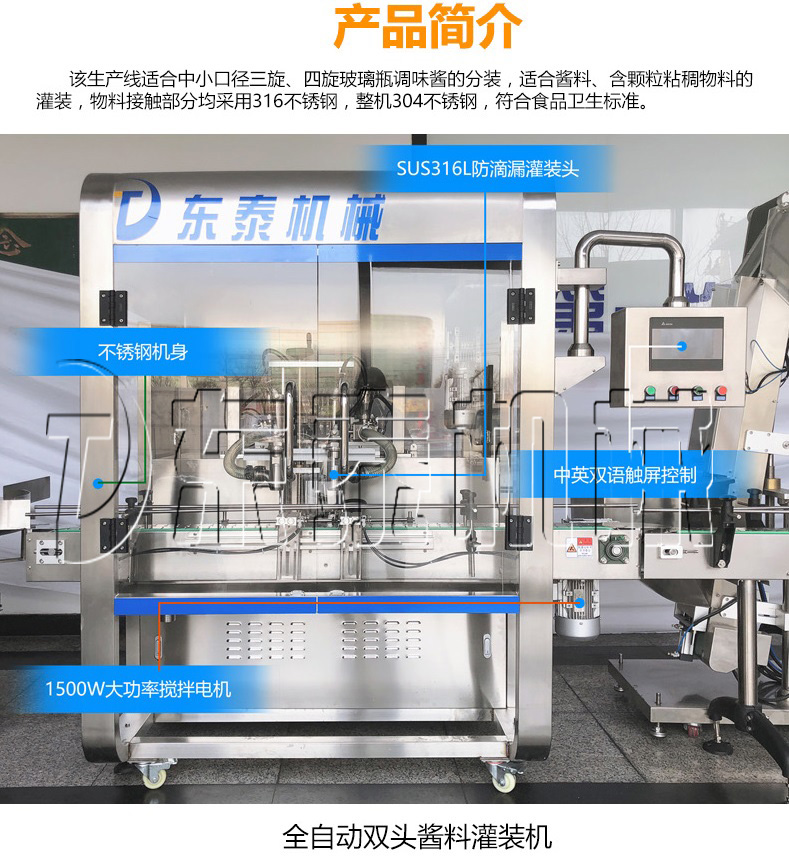 目前的生活水平的提高,也致使了更多人開始在吃上做起文章。生活中的人們對于吃的要求越來越高,對味道的追求近乎狂熱,如今市場上的辣椒醬灌裝機(jī)在使用過程中操作的實(shí)際操作降低了人員要求并且才做簡單對操作眼的專業(yè)要求也在不斷降低,這大大節(jié)省生產(chǎn)成本,深受廣大用戶的歡迎。為了保證醬料的效果能夠穩(wěn)定持久,這款辣椒醬灌裝機(jī)裝有接料槽,防止調(diào)試的時(shí)候或者出故障的時(shí)候物料灑地上以及清理麻煩,走進(jìn)超市放眼望去五花八門的辣椒醬,由此可見辣椒醬灌裝機(jī)的未來的潛力有多大的。